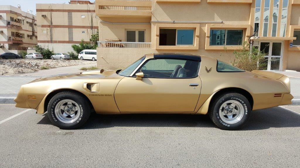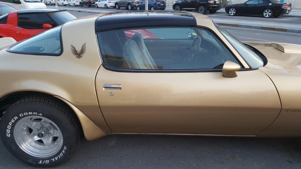 1978 Pontiac Firebird TRANSAM T-Top, power windows, power steering, AC car, numbers matching from top to bottom. New battery is installed as well as a new set of American Cooper Cobra 255/60/15 tires fitted on a beautiful set of American Racing wheels.